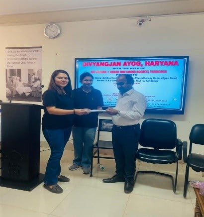 A Health and Physiotherapy Camp was organised by Nai Udaann on 15 April 2023, at DAV College, Faridabad. The venue was chosen by Nai Udaann, given its easy access for persons with disability. Shri Raj Kumar Makkad, Disability Commissioner, Haryana Government, was Chief Guest of the day-long event that featured a blood donation camp, distribution of artificial limbs and a redressal forum for persons with disabilities from nearby areas.