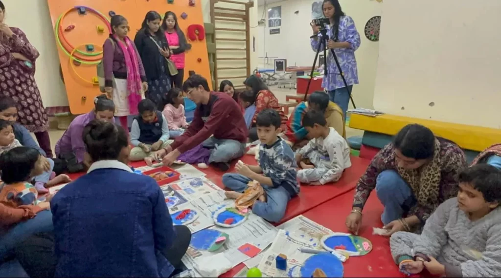 The workshop began with an engaging art and craft session, where children worked on an under-the-sea themed artwork. Volunteers prepared the base materials in advance, and as the children arrived, they gathered in a common creative space. With painting, cutting, pasting, and exploring different textures, each child brought their own imagination to life. The colourful, tactile experience allowed them to express freely while enhancing fine motor and sensory skills.