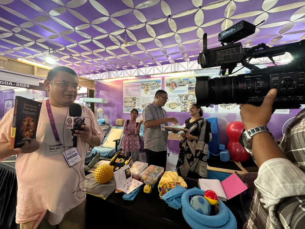 The third day focused on media interactions and professional networking, spotlighting the role of Occupational Therapy in enabling participation across life stages. Through thoughtful discussions with media representatives, the team presented the theme of “Touch and Tech”, explained the collaborative essence of the stall, and introduced NRF’s key publications — “Legal Rights Handbook” and “Quiet Corners, Bright Worlds: The Art and Science of Storytelling for Children with Special Needs.”