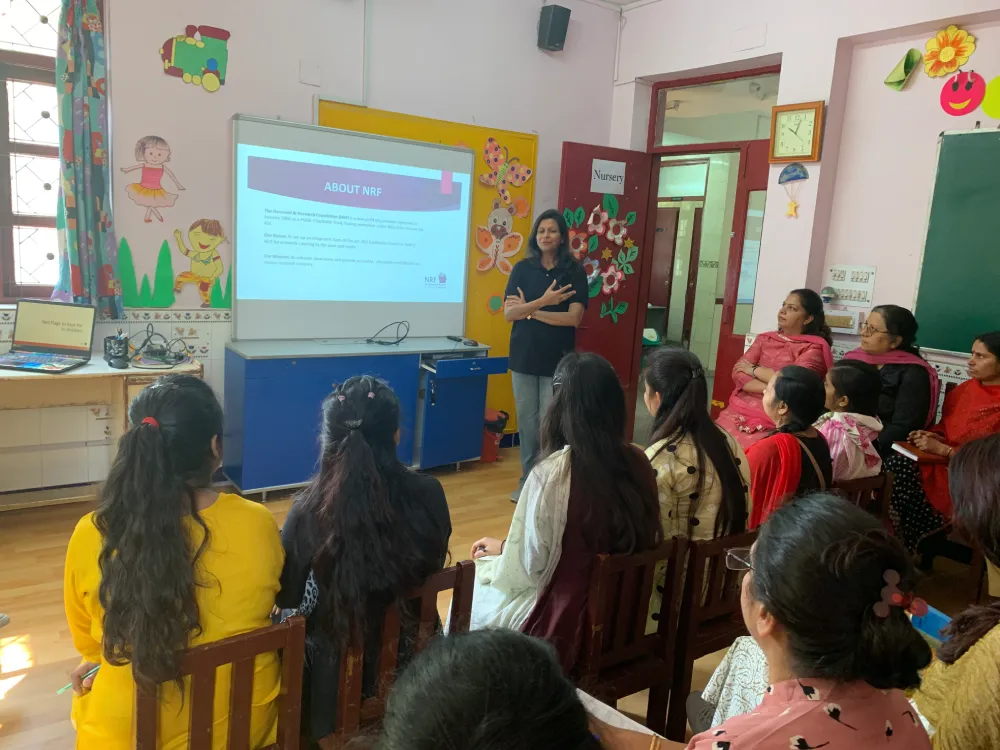 Dr Monika Kundu Srivastava, the Lead OT, introduced NRF and the team. Through a detailed presentation that was corroborated by research studies, the importance of identifying children with delays and commencing therapy as early as possible was emphasized. The role of Occupational Therapy was also briefly discussed.