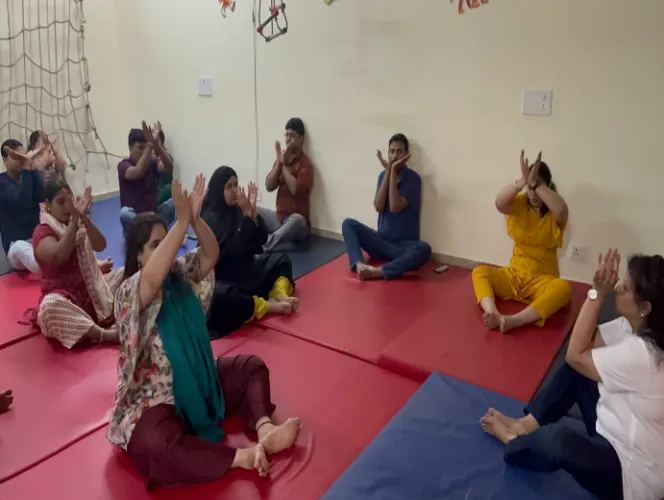The workshop commenced with Dr Monika Srivastava, the lead Occupational Therapist, extending a warm welcome to the attendees and introducing the distinguished speakers for the session. Launching into the presentations, Smiler Megha Deshpande Tripathi delivered an insightful discourse on lifestyle disorders and ailments arising from various factors such as stress, dietary habits, posture, and environmental influences. Emphasizing on a holistic approach to healing, she expounded upon the concept of Origin Smile Mudras Meditation, originally formulated by Professor Park Jae Woo and further developed by Dr. Pankaj Jain. These mudras, characterized by specific finger postures and mindfulness, have therapeutic benefits in harmonizing both physical and mental well-being. Stressing on their universal applicability, Smiler Megha highlighted that these techniques could be seamlessly integrated with conventional medical practices, alternative therapies, and spiritual disciplines. Furthermore, the speakers underscored the holistic nature of healing, addressing the interconnectedness of the body, mind, soul, and spirit, thereby providing attendees with a profound understanding of how Smile Mudras Meditation can serve as a potent tool for comprehensive wellness.